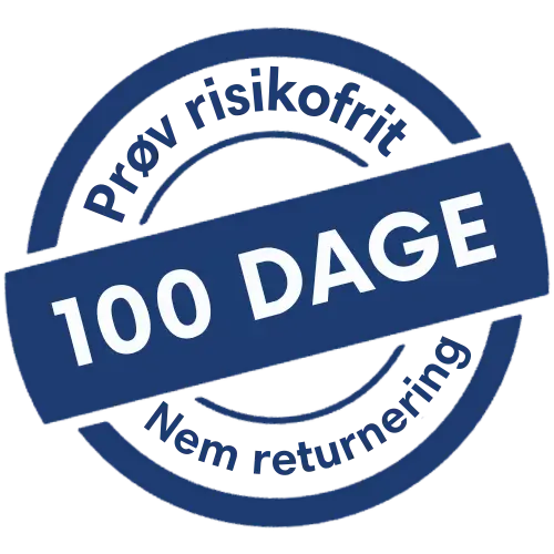Vi tilbyder 100 dages fuld tilfredshedsgaranti. Det betyder, at du kan prøve produktet derhjemme i ro og mag – og hvis du ikke er tilfreds, kan du sende det retur og få dine penge tilbage.
